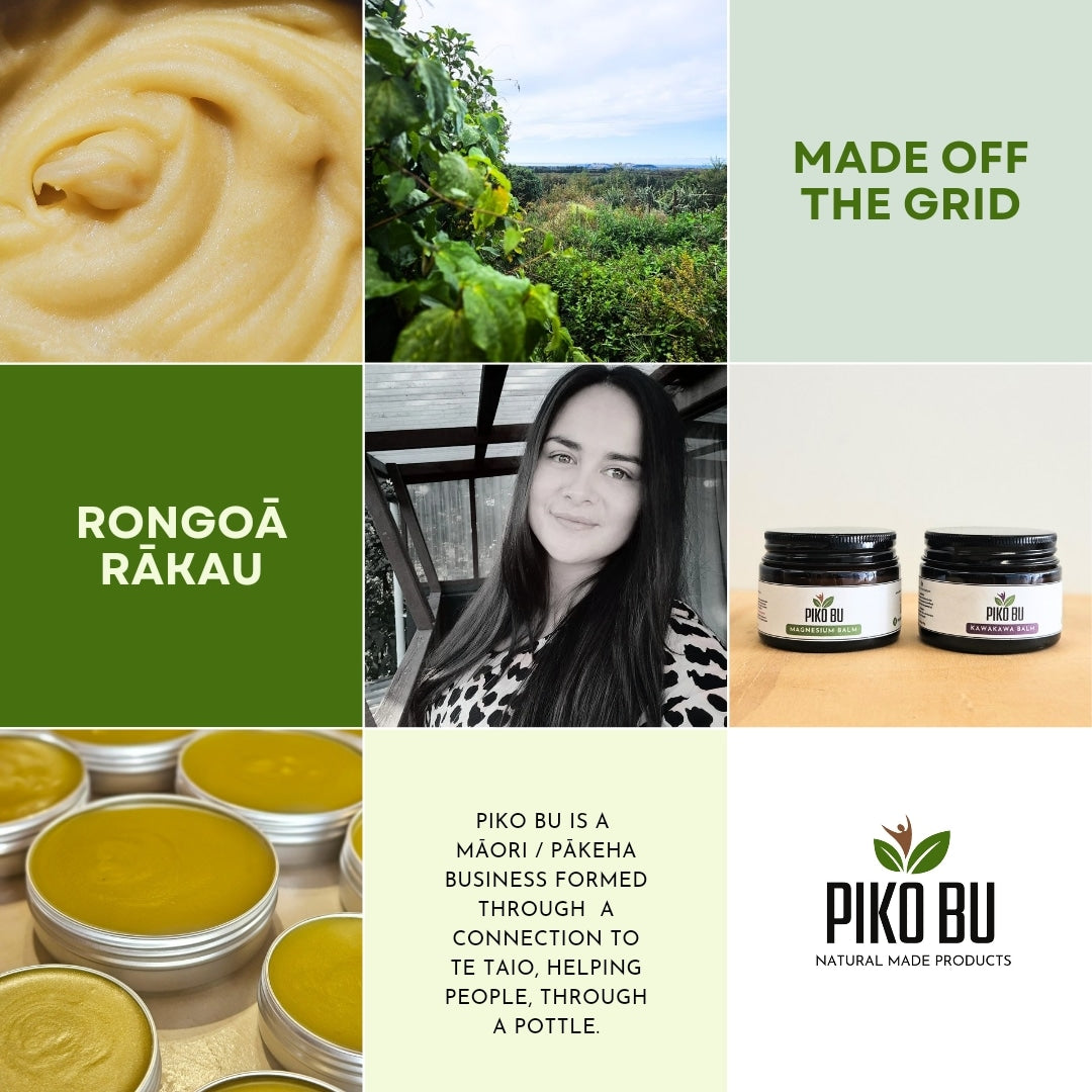 Where the moana meets the whenua, our two favourite balms. Our Magnesium Balm and Our Kawakawa Balm. Handmade by yours truely, using all natural ingredients and is apllied as rongoa to help sleep, natural pain relief, first aid and to help calm your tinana, hinengaro - body & mind.